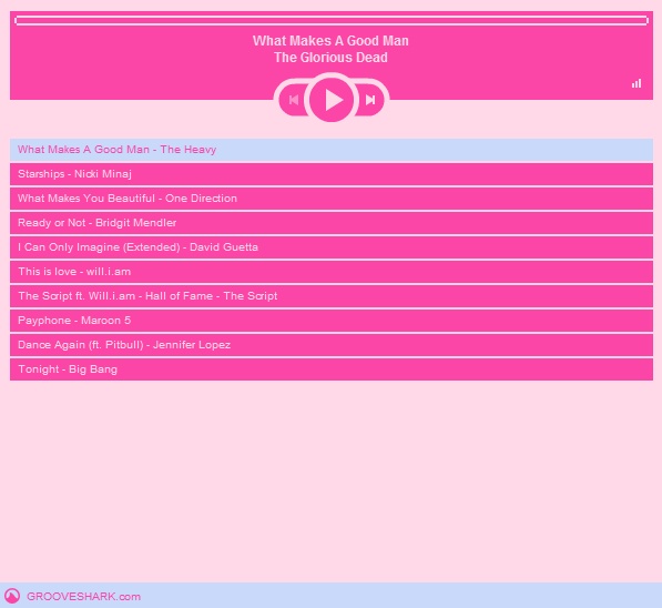 Oi. Hoje vou mostrar para vocês como criar uma playlist fofa no site Grooveshark. Se você ainda não o conhece, saiba que é um site de compartilhamento de músicas via streaming, ou seja, você pode ouvir músicas online de qualquer artista gratuitamente, só não pode baixar; em compensação, existe a opção de comprar a música ou usar as versões pagas do site para ter certos privilégios, como poder salvar sua biblioteca musical no PC e usar temas lindos quando cadastrado.